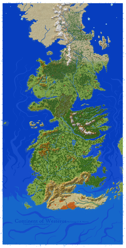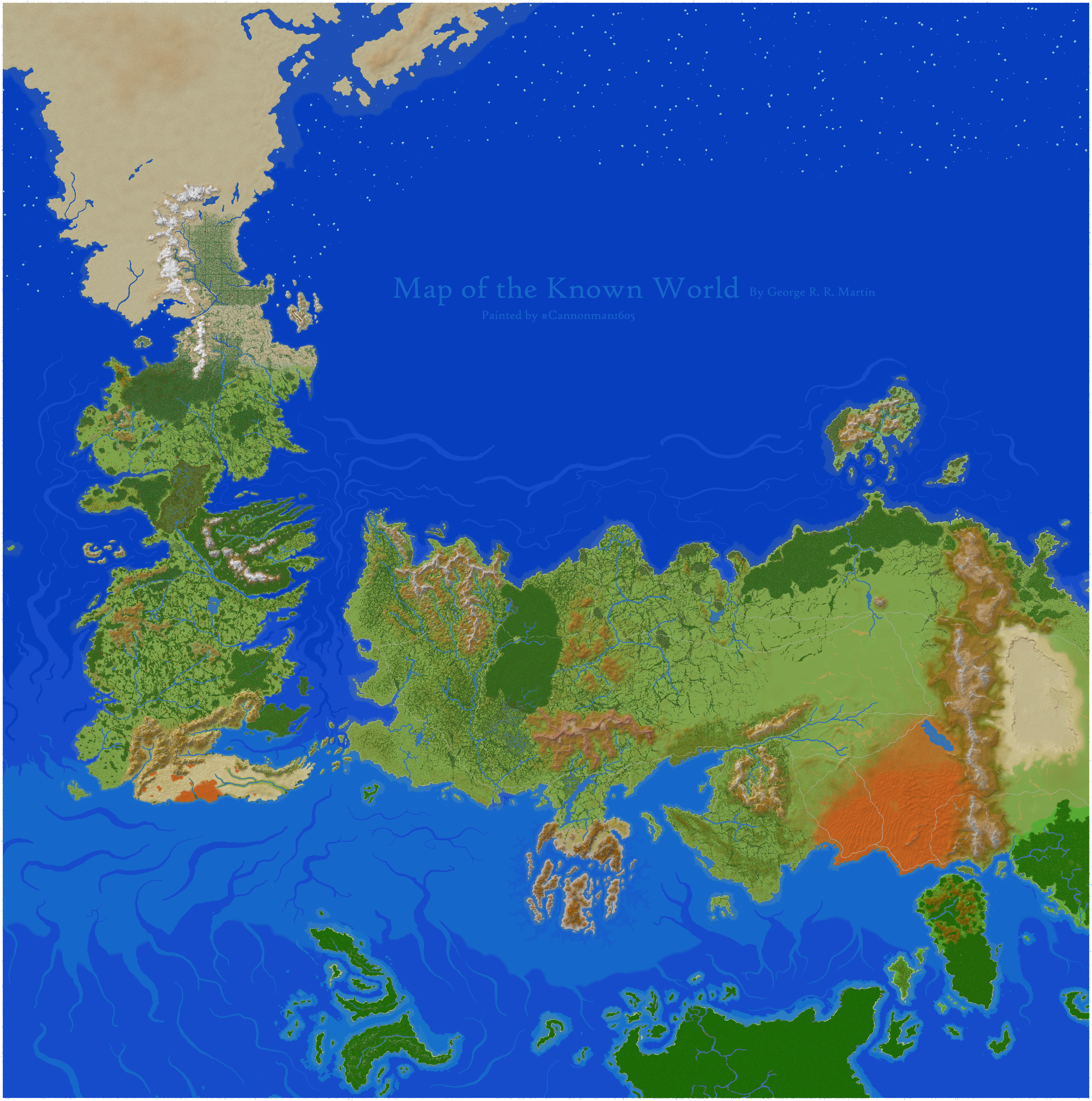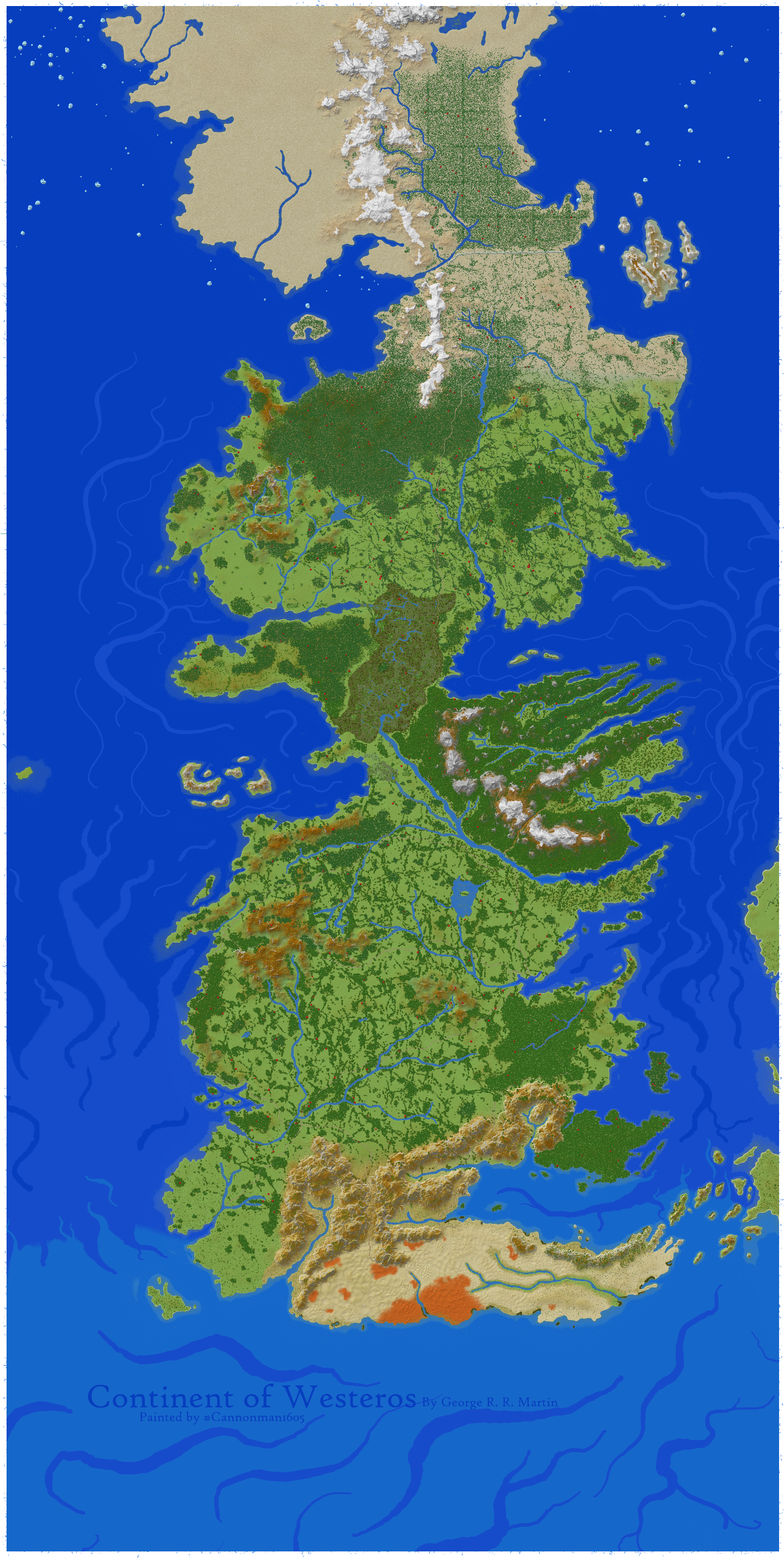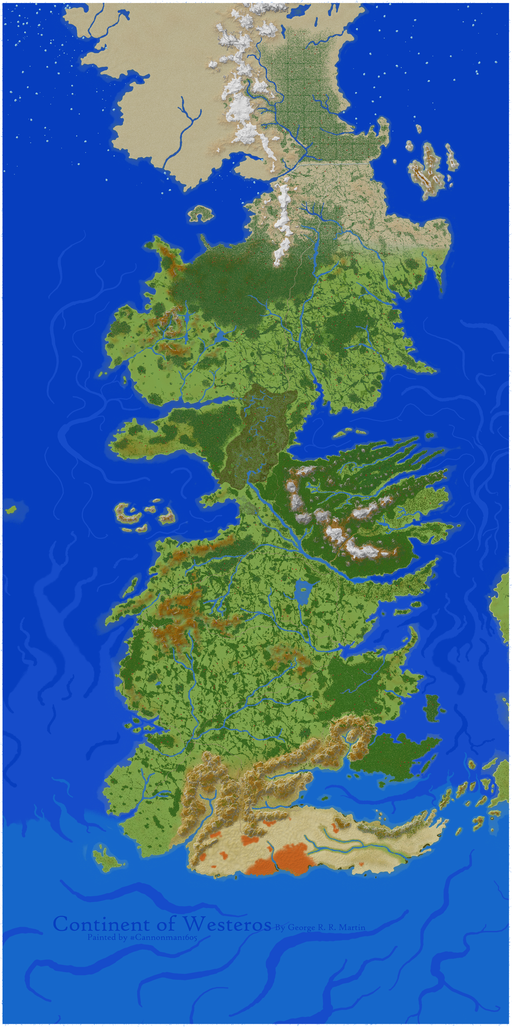 Render of the "Master map" containing the entire known world of Westeros. See my profile page if you wish to use that instead.