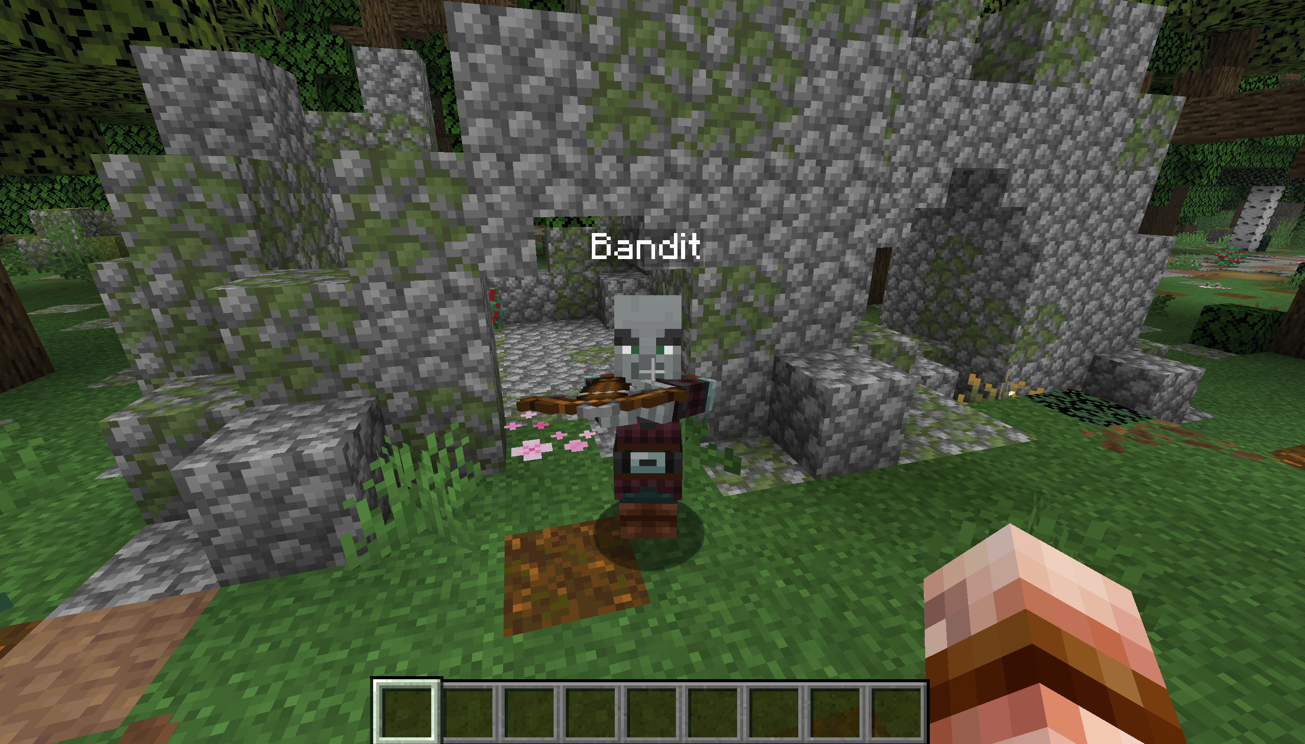 Roads are full of bandits and merchants. And youll find tons of custom ruins with monster spawners or bandit camps. (All chests use vanilla loot tables.)