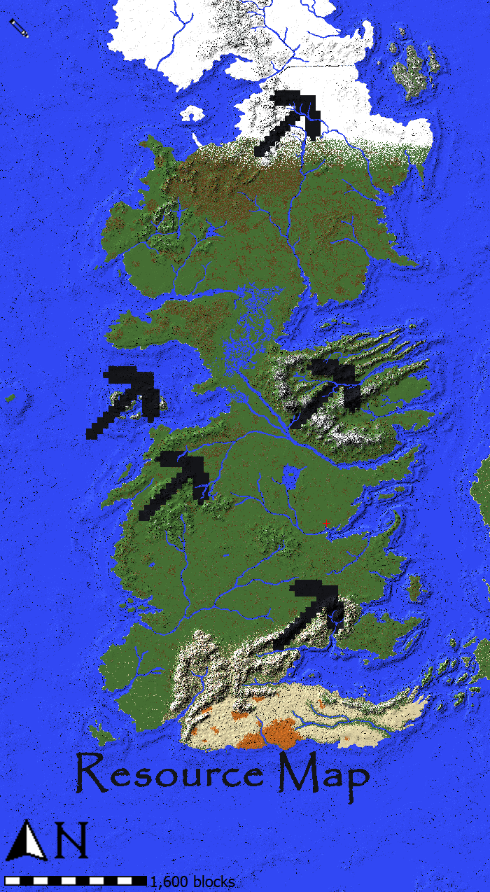 All boosts to ores are a subtle but meaningful double boost compared to vanilla rates. Each mining hot spot carries diamond in addition to a unique ore to that area. The Iron islands, the Mountains of the Vale and the hills near Winterfell have boosted iron ore. The Red mountains in the far north of Dorne have Amber ores in y30-y320. The hills near Lannisport contain gold ore at all y levels. Each one has an additional boost to diamonds to make each area worth fighting for control over on a geopolitical towny/factions server.